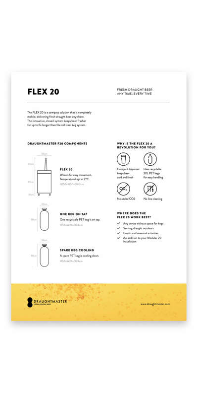 Säilyvyys Metallisissa kegeissä oluen maku heikkenee 5 päivän kuluttua, DraughtMasterin tiivistetyssä järjestelmässä oluen maku on raikas vähintään 31 päivän ajan.
